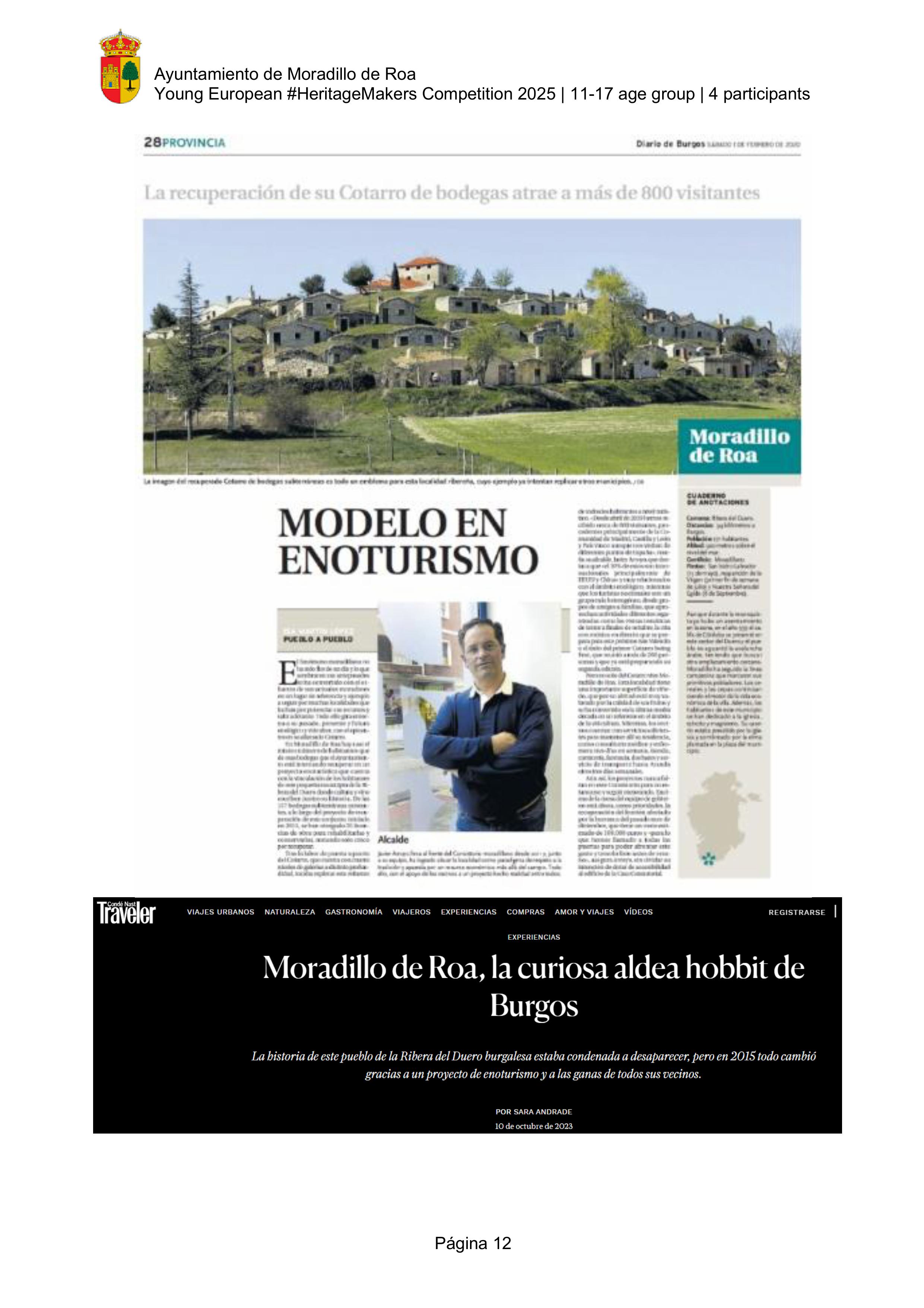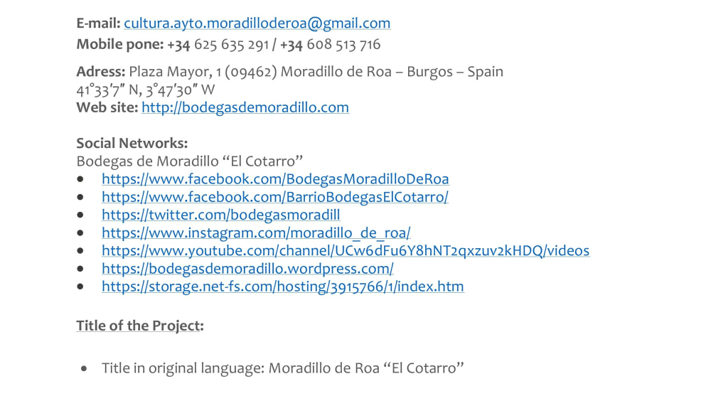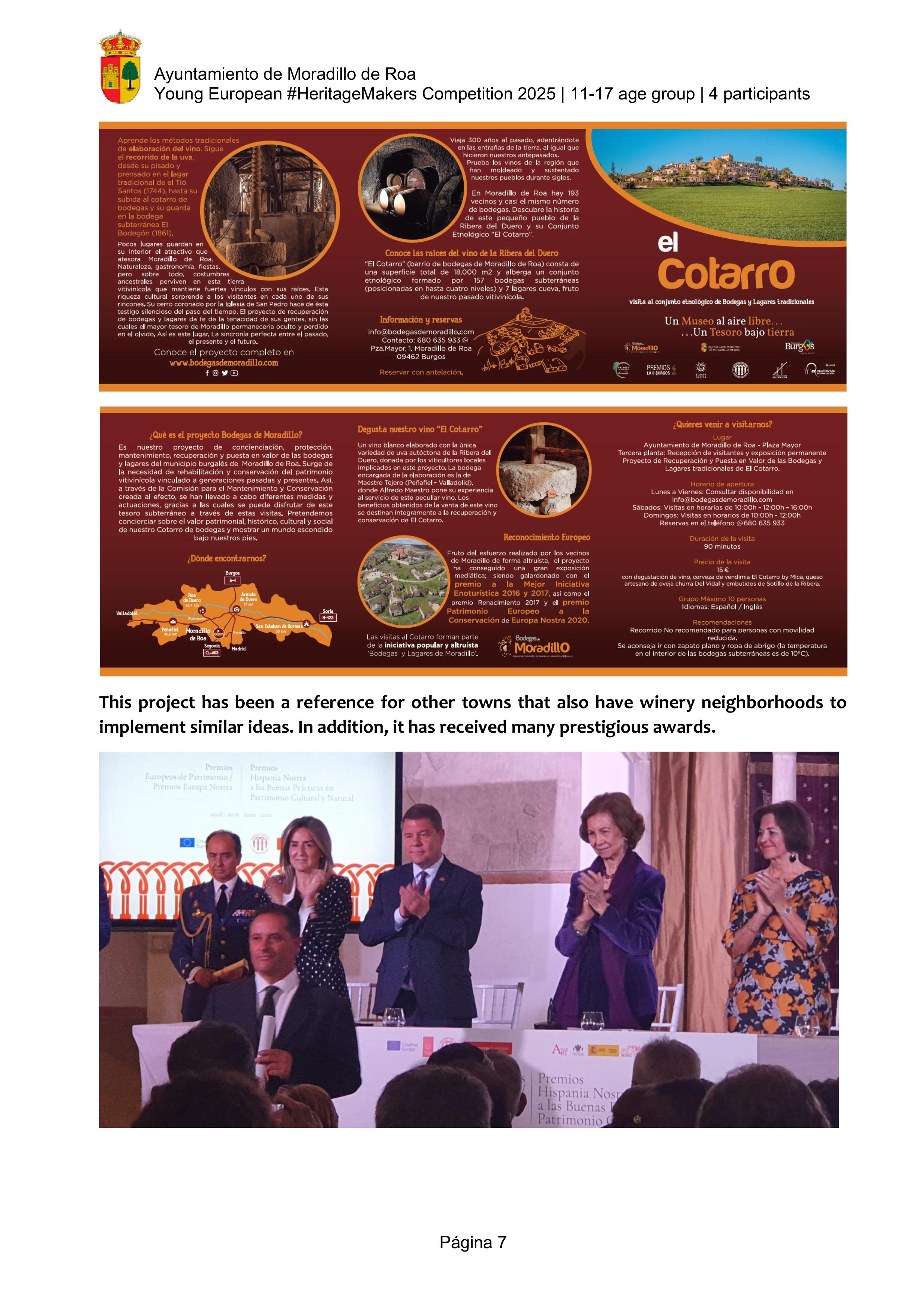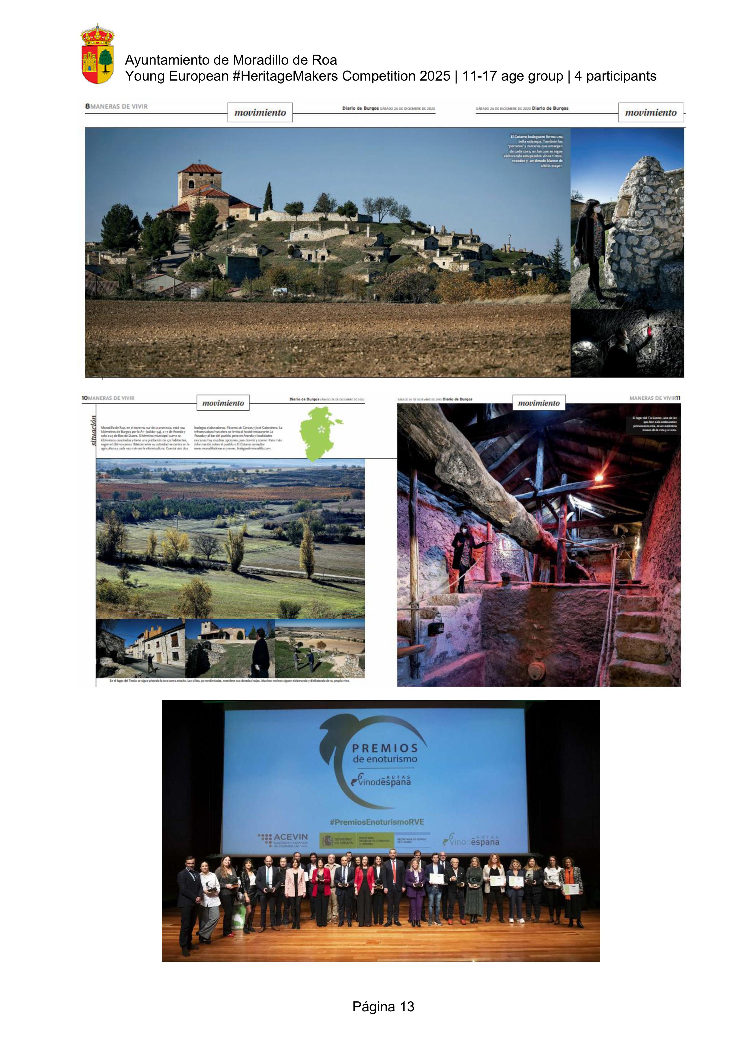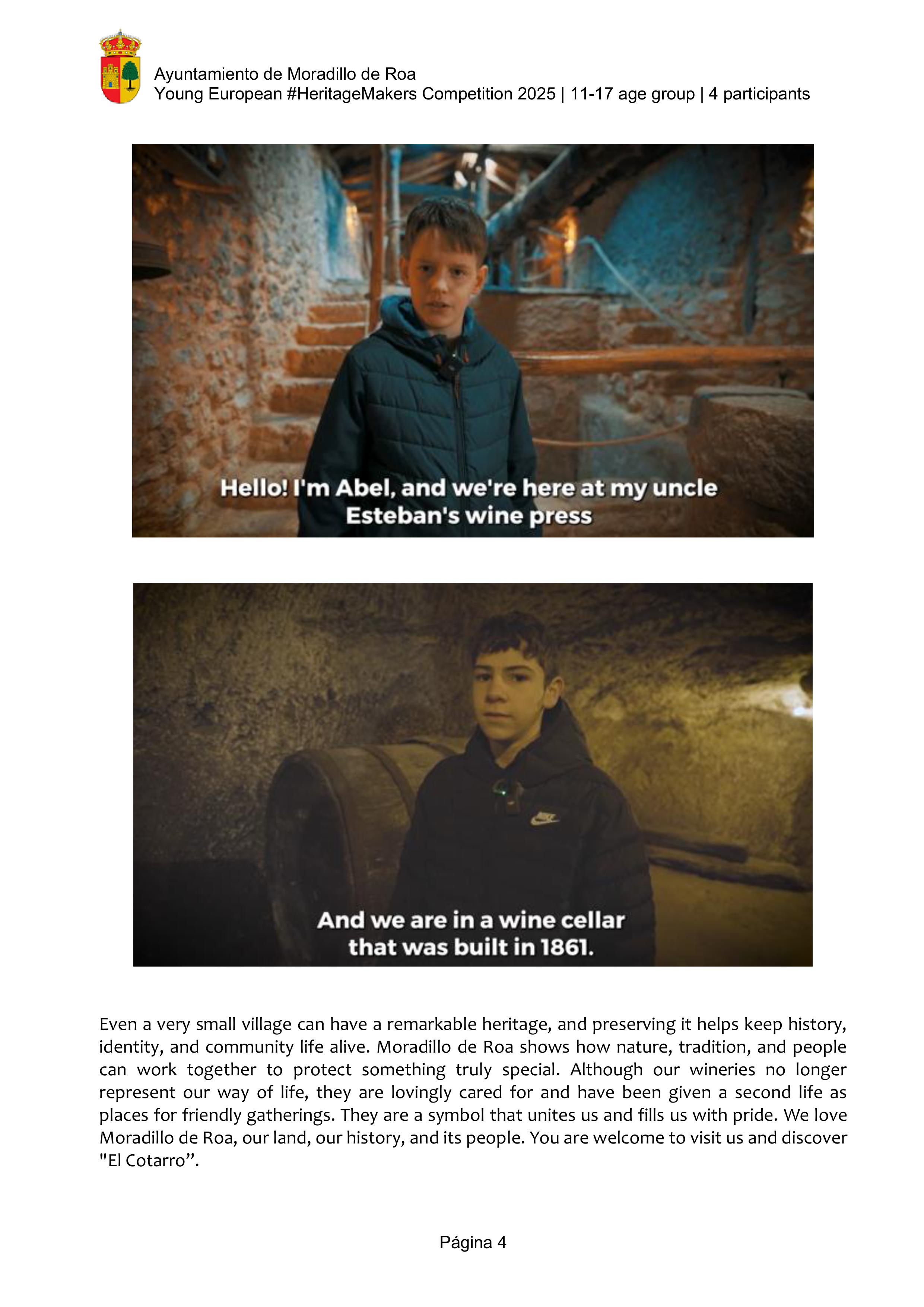The video highlights the unique winemaking and architectural heritage of Moradillo de Roa, a small village in the Ribera del Duero region of Spain. It focuses on “El Cotarro”, the underground neighbourhood of traditional wine cellars. These wineries represent centuries of winemaking tradition in the area. This heritage is not only as a reminder of the past, but also as a cultural and tourist resource   that keeps the town's history alive.
