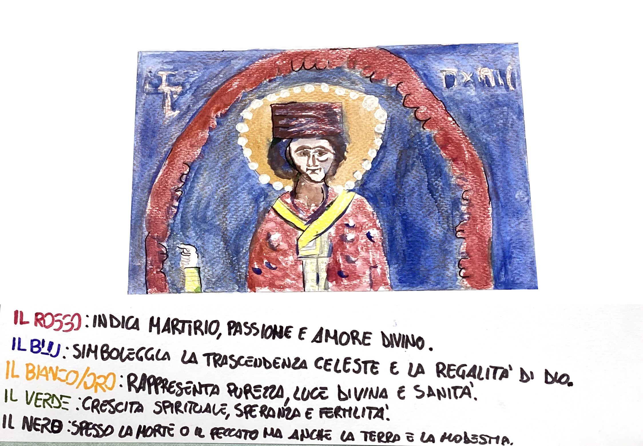 Abbiamo approfondito il dialogo tra Oriente e Occidente osservando i dettagli artistici. Gli elementi bizantini includono figure frontali e bidimensionali, l'uso abbondante dell'oro e dei colori simbolici (il rosso per la divinità, il blu per l'umanità). Al contrario, abbiamo identificato elementi occidentali nelle iscrizioni in latino a fianco a quelle in greco, e in alcuni dettagli di abbigliamento che richiamano la moda medievale occidentale.