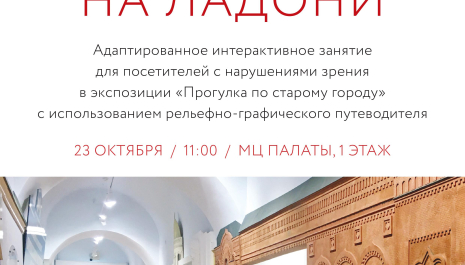 23 октября 2021 года в 11:00 в Детском музейном центре МЦ "Палаты" пройдёт адаптированное интерактивное занятие "Город на ладони" для посетите