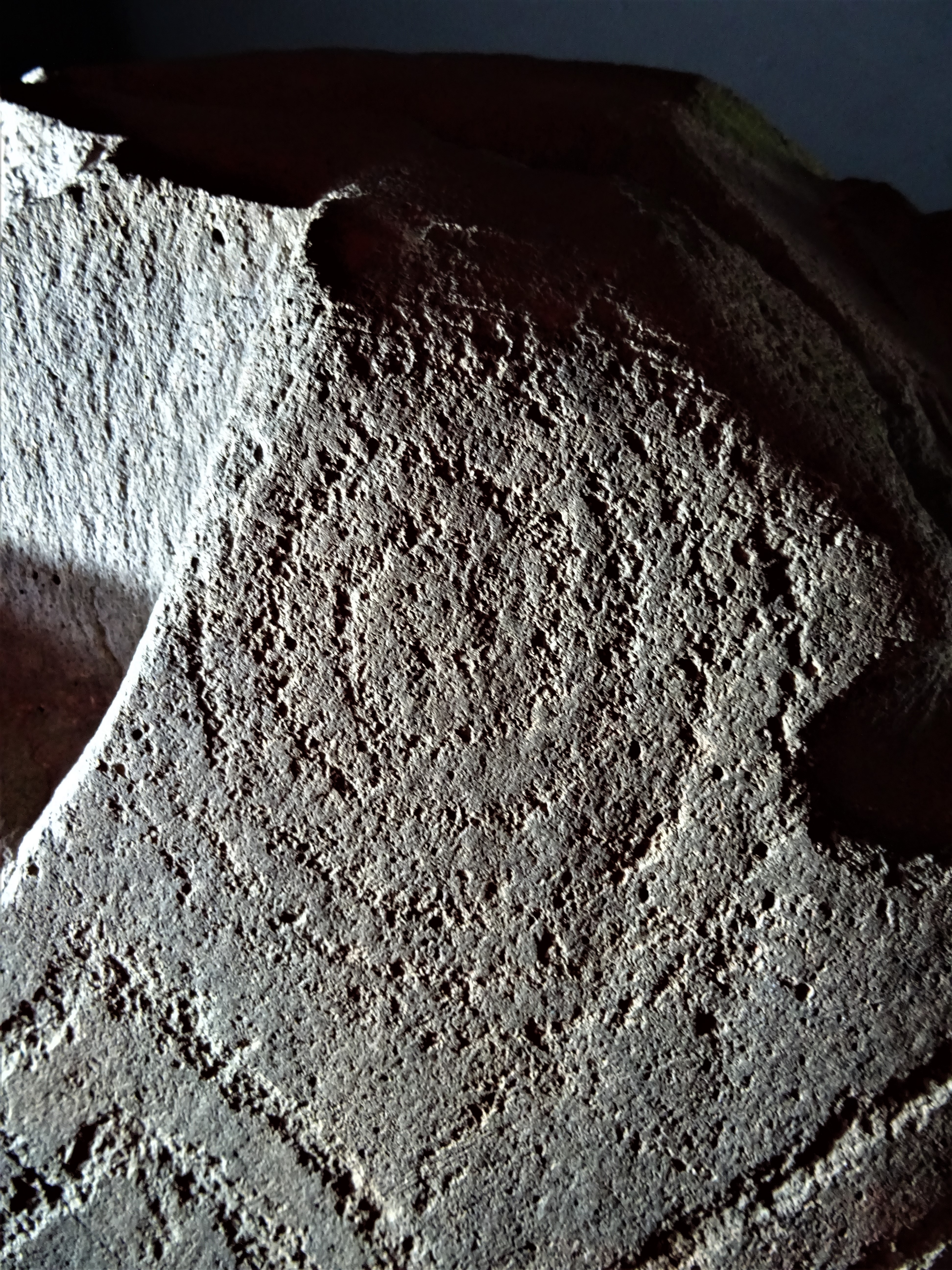 Celebrated as part of European Rock Art Day celebrates was the 5000-year old burial site of Barclodiad y Garwes in Anglesey, North Wales. This unique burial chambered site was excavated in the early 1950s by Glyn Daniel and Terrence Powell. Revealed at this time were five engraved upright stones that form part of the chamber and passage architecture. The engravings, made-up of chevrons, concentric circles, spirals and zigzag lines are pecked and possibly represent a form of prehistoric communication system. The same motifs are found in Ireland and along, what is termed the Atlantic façade (France, Portugal, Spain and southern Scandinavia).