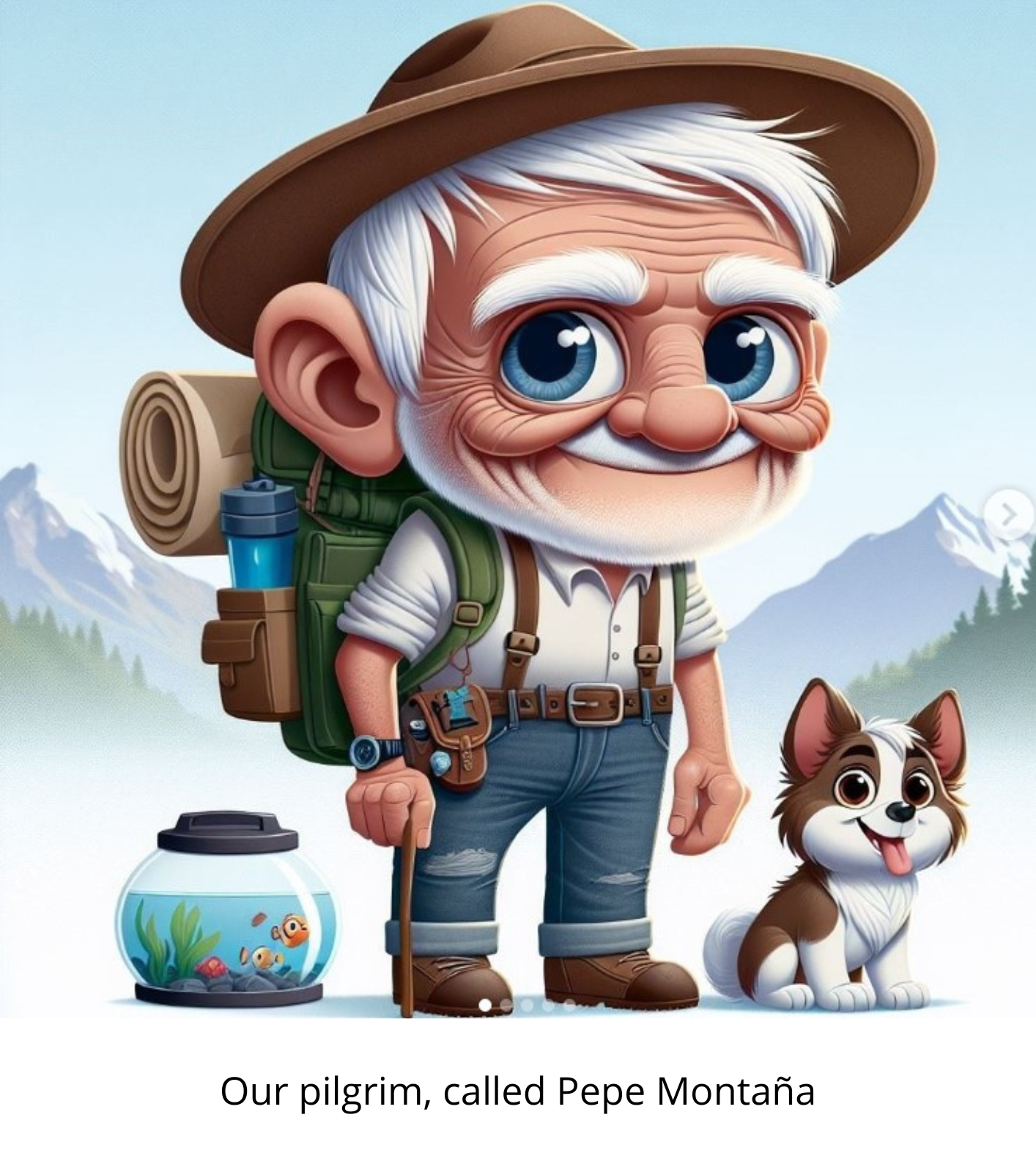 Design of the image of the pilgrim using Copilot Artificial Intelligence. The children made a written description in the language area which was transformed into an image using AI. This resulted in several images.