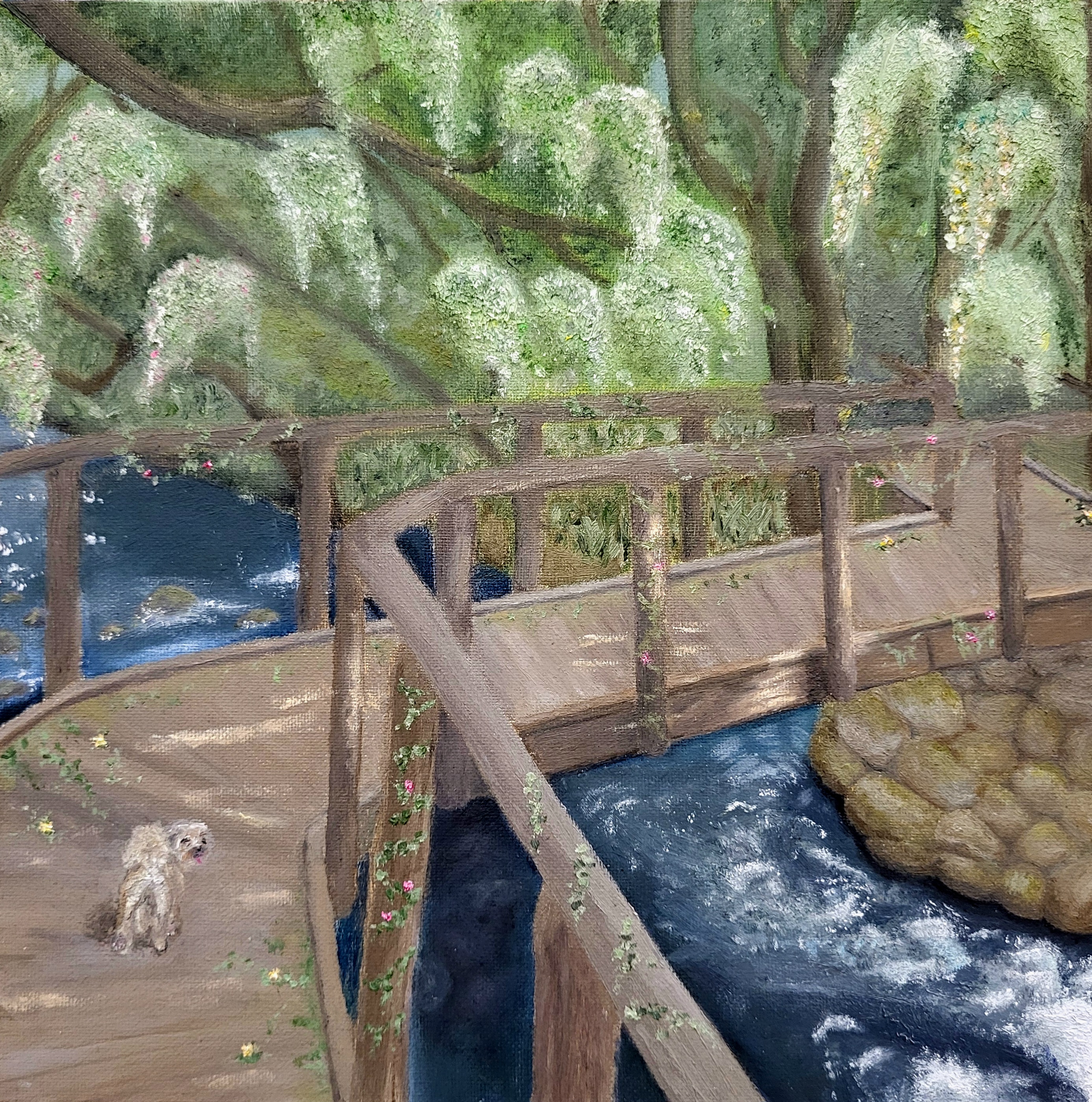 Ravintolalle tullessamme meitä tervehti suloinen pieni koira. Se käveli kanssamme ravintolaan. Meille kerrottiin ravintolan olevan hetkellisesti suljettuna ja se avautuisi vasta noin puolen tunnin kuluttua. Emme edes tienneet kylän nimeä, johon olimme tulleet. Sen löytäminen uudestaankin oli ollut pienen seikkailun takana, jossa tuli todellakin testata muistia. Nyt meillä oli aikaa kierrellä tuota rauhallista kylää, mutta minne lähtisimme ensimmäisenä. Saimme kysymykseemme vastauksen, kun koira lähti johdattamaan meitä viereistä tietä pitkin. Päädyimme toiseen ravintolaan, joka oli myös suljettu. Tämäkään ei estänyt meitä tutkimasta sen ympäristöä. Emme taaskaan tienneet edes paikan nimeä, seurasimme vain koiraopastamme niin kutsuttuun seikkailuun. Kävelimme metsään rakennettujen siltojen yli ja nautimme jokimaisemasta. Tutkiessamme polulta löytyviä kylttejä päädyimme siihen ajatukseen, että metsän rakennettu ympäristö, kuten sillat ja valaistukset, ovat rakennettu luontopolku käyttöön. Kävellessämme tuota luontopolkua tuntui, kuin olisi takaisin Suomen rauhallisissa ja loputtomissa metsissä. Lopulta pääsimme myös syömään joen varteen ja matka päättyi onnistuneesti.