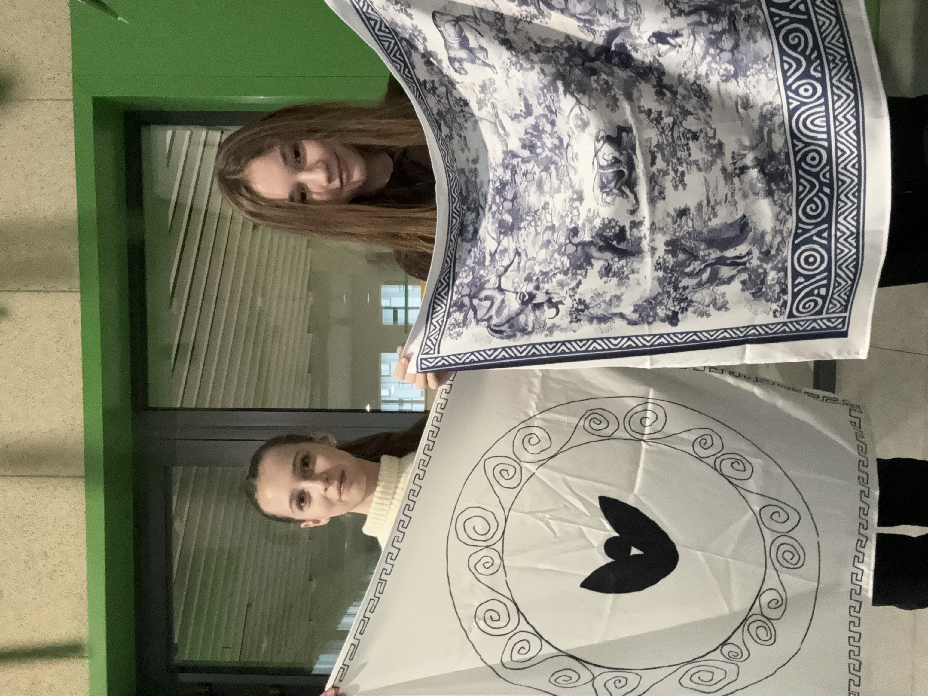 Finally, we integrated Trypillian symbolism into modern accessory design. We chose silk scarves as our main