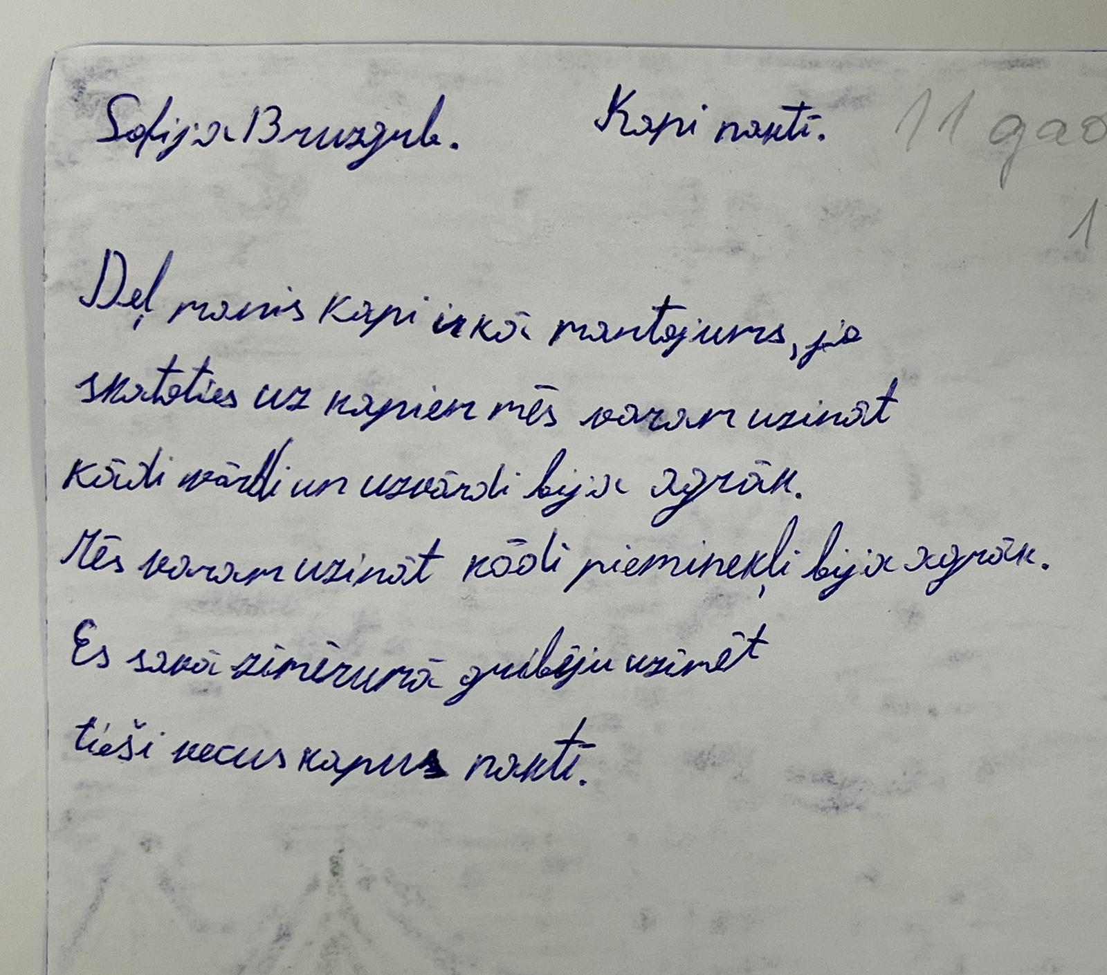 LV: Deļ manis kapi ir kā mantojums, jo skatoties uz kapiem, mēs varam uzzināt, kādi vārdi un uzvārdi bija agrāk. Mēs varam uzzināt, kādi pieminekļi bija agrāk. Es savā zīmējumā gribēju uzzīmēt tieši vecus kapus naktī.