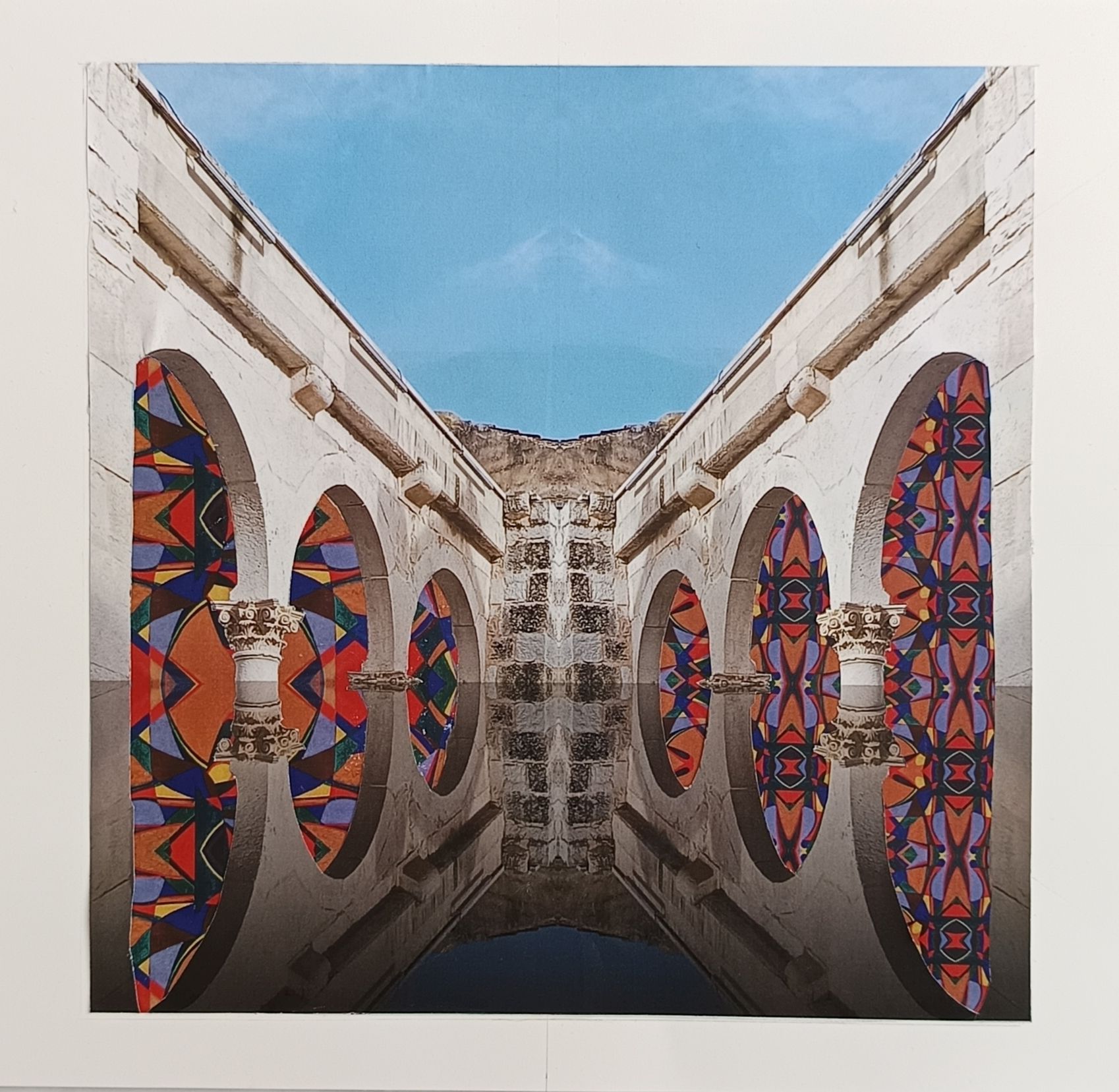 “Ritmi dinamici” entro sfondi architettonici combina il linguaggio fotografico con quello del design del tessuto. Le arcate della loggia, contrapposte in maniera speculare, ospitano una texture ispirata ai motivi grafici e lineari di un’opera di Giacomo Balla (Ritmi dinamici curvilinei e scattanti) presente nel museo.