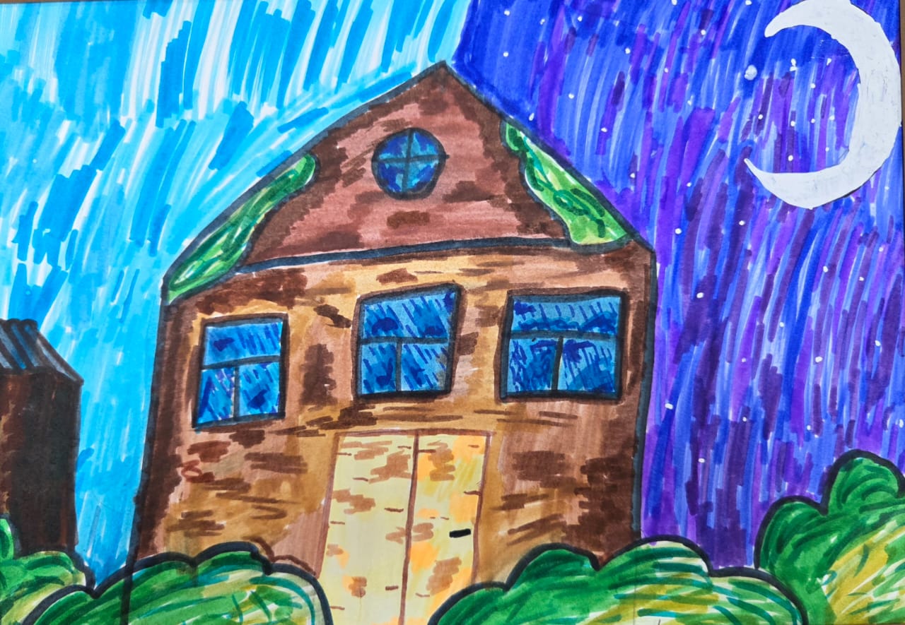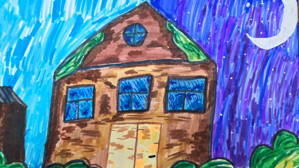 In the drawing with the old house, we imagined it as a symbol of inheritance—a home that elders love and take care of. But the artist explained that in real life the house is left untouched day and night, and it may not be important for future generations.