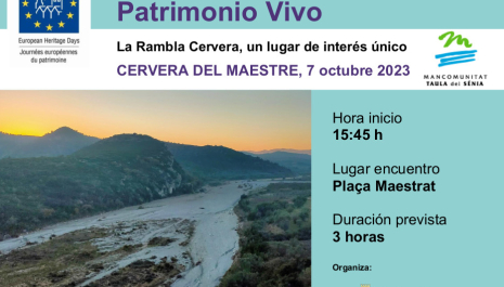 Ruta a pie guiada por uno de los patrimonios naturales y culturales más interesantes y con más actividad de nuestra comarca, la Rambla de Cervera