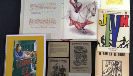 Exposición de una selección de folletos, hojas sueltas, calendarios, carteles, pasquines, panfletos, cromos, programas, catálogos, etc., desde