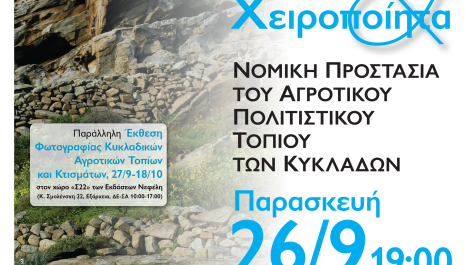 Θεόκτιστα και χειροποίητα: Νομική προστασία του αγροτικού πολιτιστικού τοπίου των Κυκλάδων, στο Ιωνικό Κέντρο